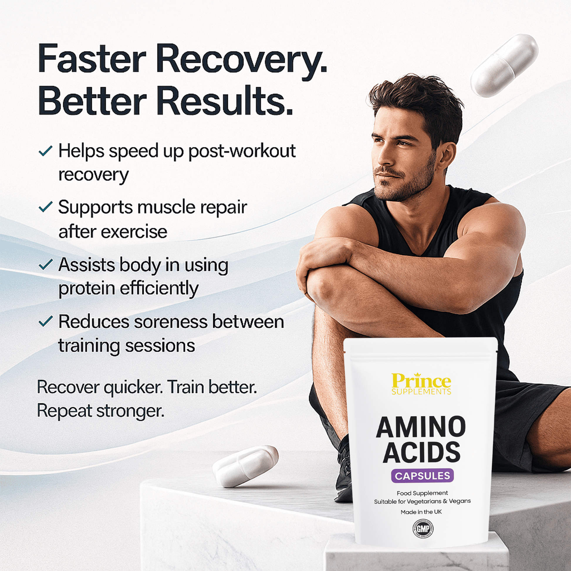 Adding Essential Amino Acids as a supplement to your diet helps the body to extract the maximum amount of nutrients from protein sources. This in turn may help you to train harder and for longer while the body may also be able to recover more quickly.