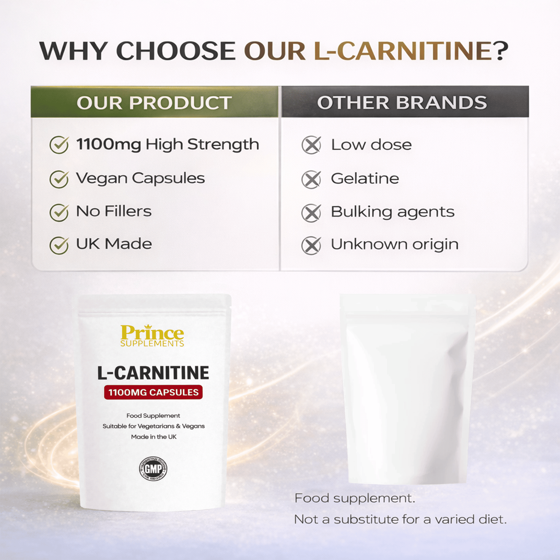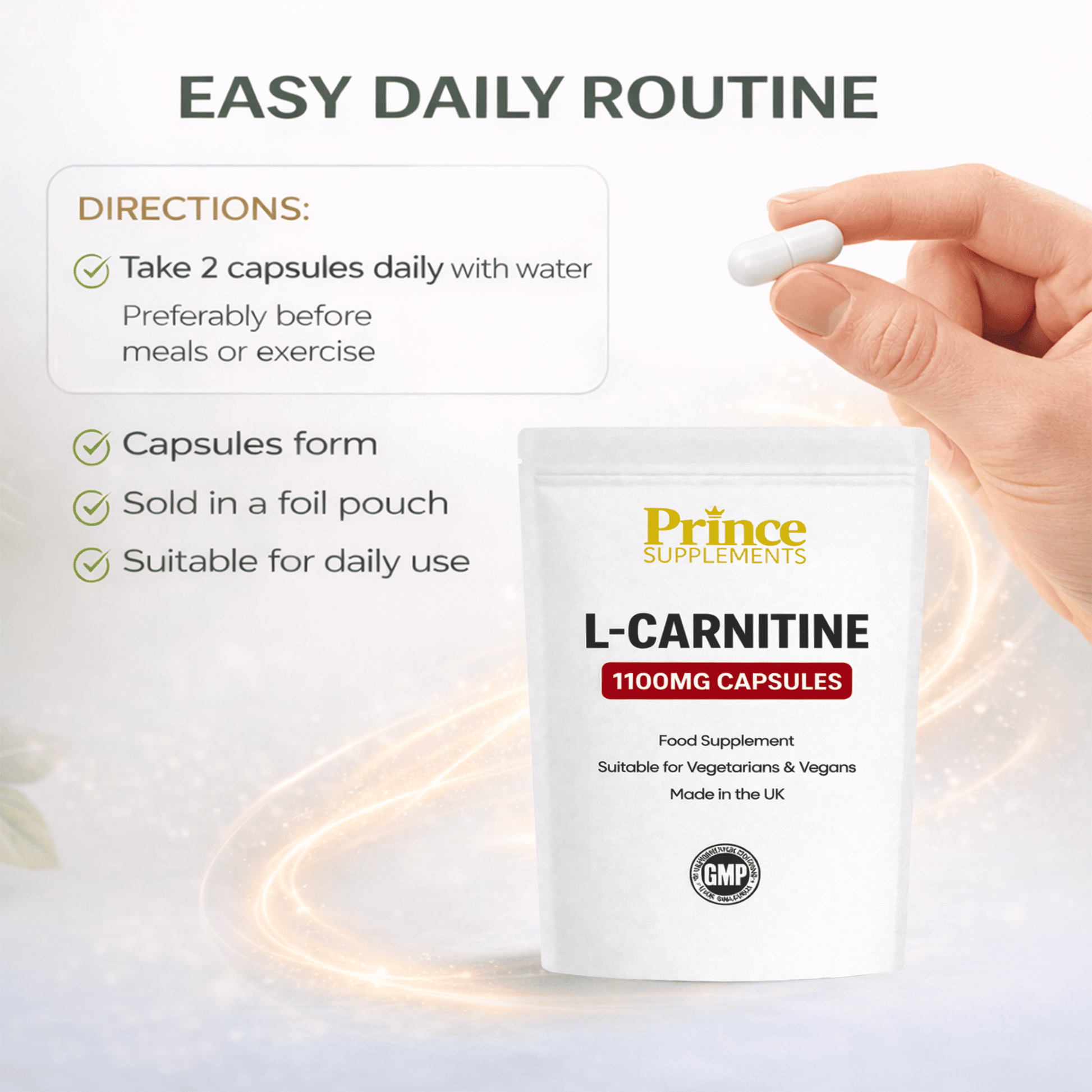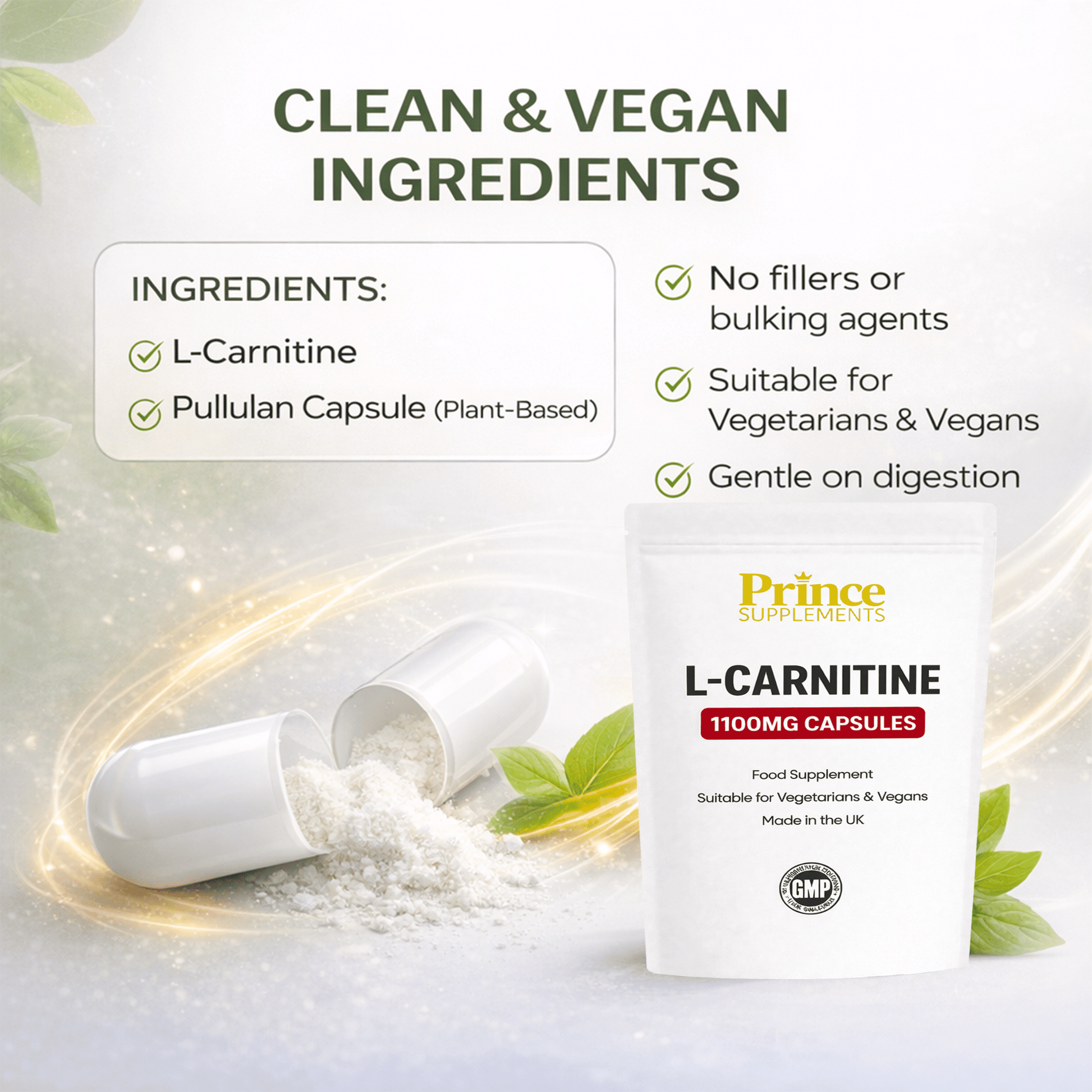 A clean high quality L Carnitine supplement designed for daily use with no unnecessary additives suitable for vegan and vegetarian diets.