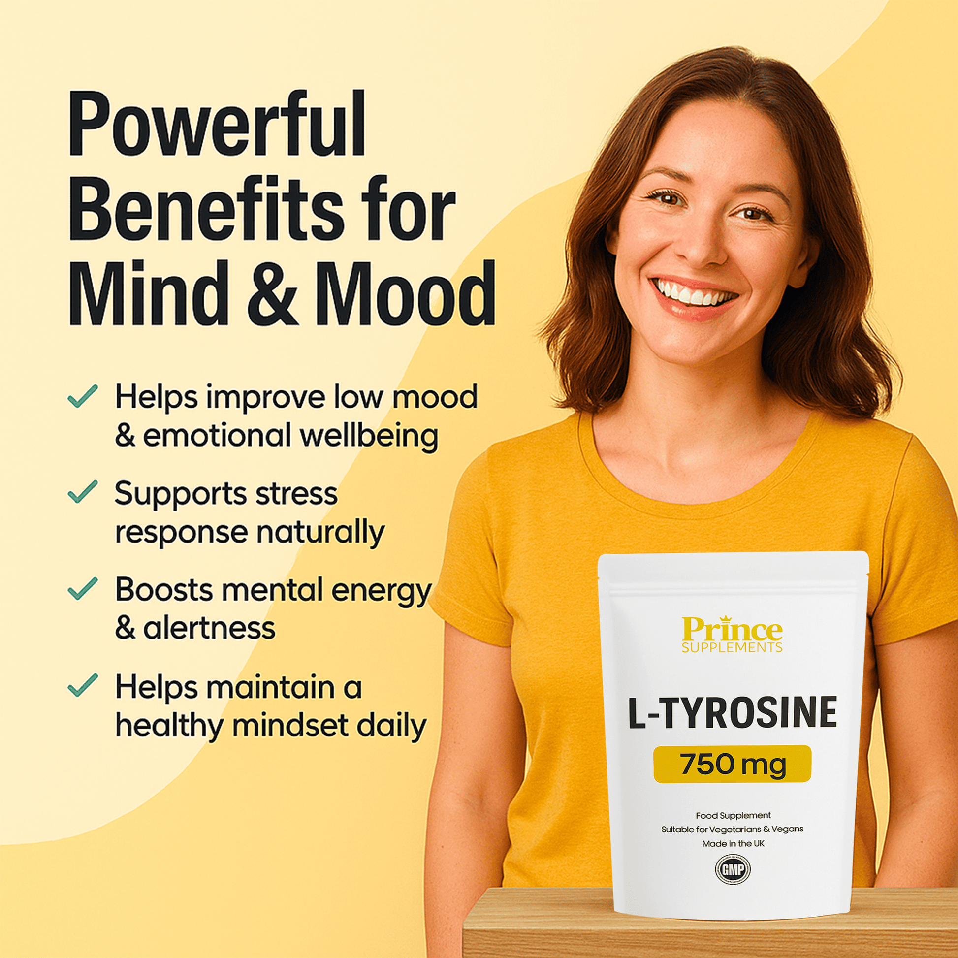L-Tyrosine 750mg capsules/Tablets Stress Low Mood Healthy Mind