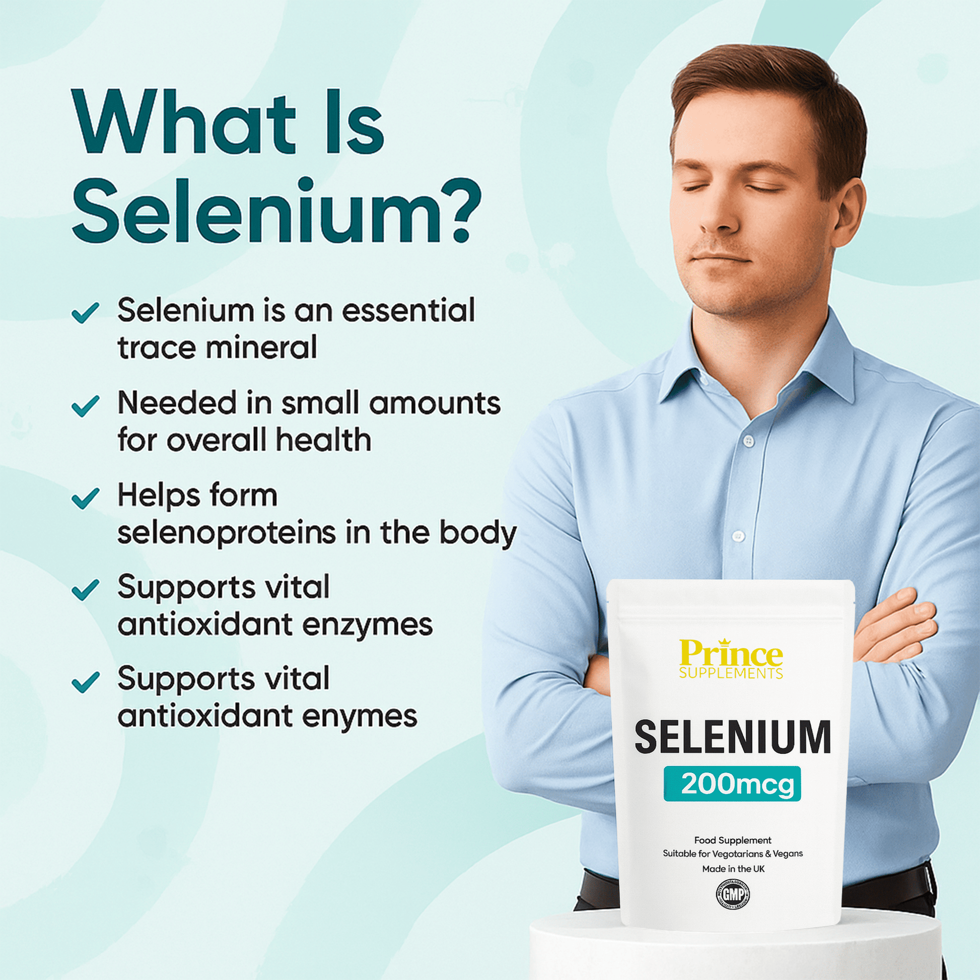 Selenium 200mcg, Sodium Selenite, Vitamin A, Vitamin C, Vitamin D,