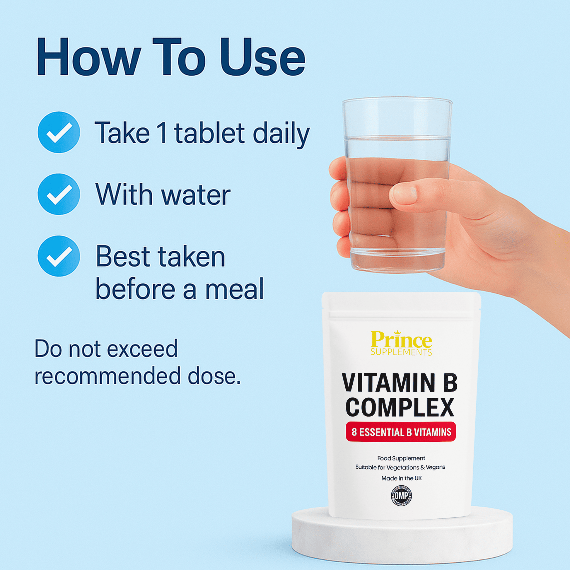 - Vitamin B5 (Calcium D-Pantothenate) 6mg (100% RDA),