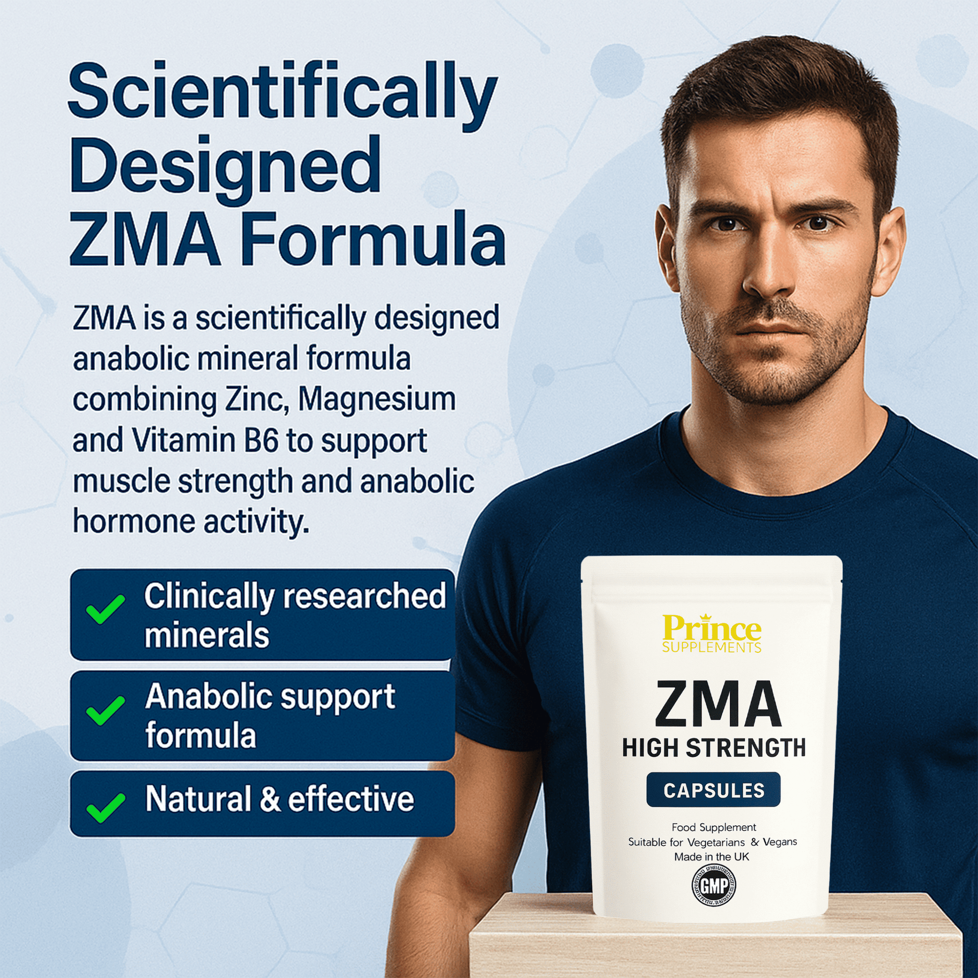 ZMA is a scientifically designed anabolic mineral formula. It contains Zinc Monomethionine Aspartate plus Magnesium Aspartate and vitamin B-6, an all-natural product that clinical testing suggests may significantly increase anabolic hormone levels and muscle strength in trained athletes.